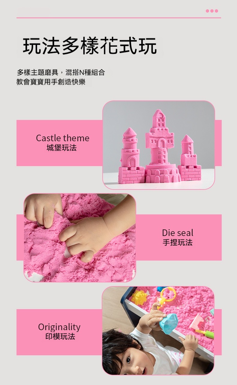 兒童太空沙✅ 100% 無毒安全認證!✅ 「嘸黏手!嘸黏衫!」✅ 收納10秒完成!✅ 激發創造力+小肌肉訓練!